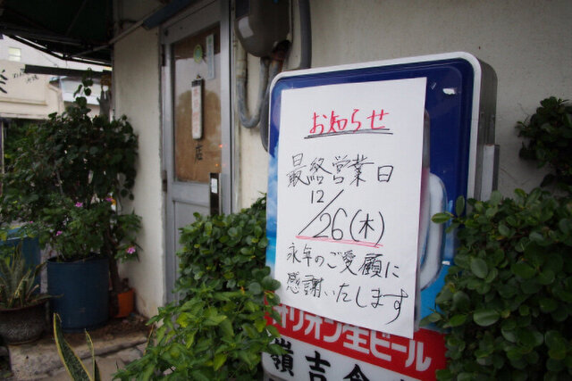 嶺吉食堂はてびち・煮付けの老舗として有名な大衆食堂でした。お店の方の高齢化によるリタイヤと、嶺吉食堂を含めたこのあたり一帯が再開発の計画地として指定されたことも閉店の原因のひとつだそうです。