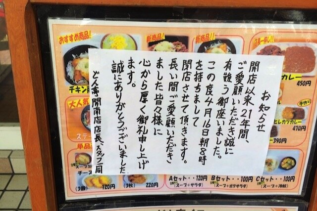 閉店の理由は不明で、結局どん亭開南店がなぜ独自路線を突き進んだのかは結局分からずじまいでした。