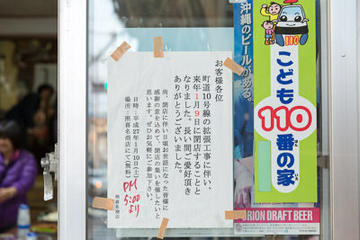 創業約50年の照喜名商店は道路拡張のため2015年1月に閉店。閉店翌日には「閉店の集い」が催されました。